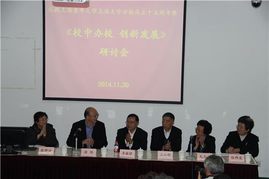 11月20日下午,上海老年大学德赢ac米兰官方合作vwin分校成立十五周年暨《校中办校创新发展》研讨会在德赢ac米兰官方合作vwin宝山校区J楼101会议室召开。德赢ac米兰官方合作vwin党委常委、组织部部长徐旭参加会议并讲话;上海老年教育领导小组办公室主任、上海老年大学常务副校长、上海教委原副主任李骏修也前来参加会议并发表了热情洋溢的讲话;上海老年大学高校专业委员会主任、上海老年大学东华大学分校校长王以刚讲话;上海老年学学会副会长、德赢ac米兰官方合作vwin张钟汝教授报告了德赢官网“随堂听课”教学新模式的科研成果。老年大学声乐班教师张正风做了《我的第二个家》的发言;学员李蜀辉发言题目是《快乐、幸福、充实、多彩》,学员李祖齐也发自内心的讲道《随堂听课新模式真好》,张桂燕的发言《老年大学是我良师益友》。