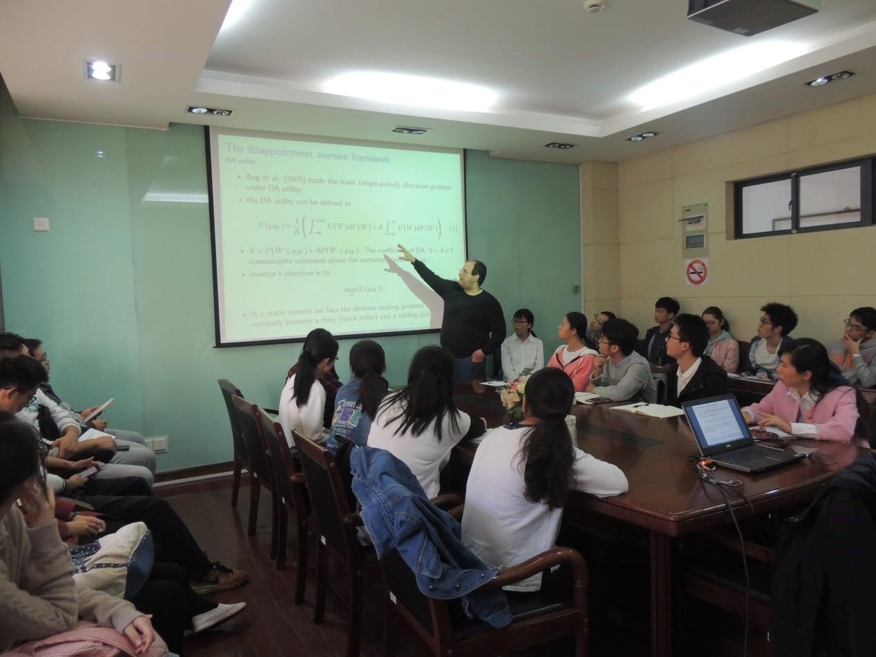 10月27日下午4点,德赢ac米兰官方合作vwin高端外专项目Athanasios Pantelous教授在管理学院467会议室出席了上海管理论坛学术会议,并做题为“失望厌恶偏好下的动态资产配置”的主题报告。会议由管理学院周建老师主持,来自管理学院的众多师生参加了本次讲座。 由于投资收益和风险的不确定性,个体投资者和金融机构面临的核心问题就是如何在不确定的环境下对资产进行有效的配置,实现资产回报的最大化与所承担风险最小化的均衡,即如何进行投资组合的选择。Athanasios教授在风险投资方面的研究大多源于2017年诺贝尔经济学奖的获得者Richard Thaler的研究,是该领域的研究前沿。Athanasios首先指出了失望厌恶偏好下投资投资者的投资心理,并进一步描述了失望厌恶偏好下最佳投资组合问题的动态框架。随后,Athanasios教授在现有投资组合的理论基础之上,建立了一个动态规划算法,计算出不同投资层面最佳投资组合的变化。 最后,Athanasios Pantelous教授为在座师生介绍了在失望厌恶偏好下投资组合的选择问题的最新建模及求解方法,并就该问题与现场师生进行了激烈的讨论,以及此类文章的撰写技巧,在座的师生都表示受益匪浅。 Athanasios Pantelous教授主要研究领域为风险不确定条件下的数学建模问题,在精算学、量化金融,计算机数学、应用随机分析、系统和控制理论以及随机动力学等方向上均有涉猎。其理论成果在精算学、工程、经济等金融领域上已有广泛应用。在数学、经济管理、金融、工程等领域的国际权威学术期刊上发表140余篇论文,是多个国际学术会议的审稿人,组织者。同时,还担任ASCE-ASME Journal of Risk and Uncertainty in Engineering Systems的客座主编。 国际事务处 管理学院 |
