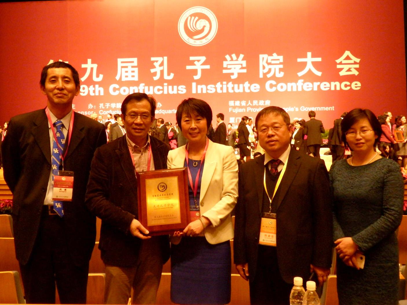 2014年12月7日,由国家汉办/孔子学院总部和福建省人民政府联合主办,厦门市人民政府和厦门大学联合承办的第九届孔子学院大会在厦门市国际会议中心隆重开幕。德赢ac米兰官方合作vwin副校长汪敏教授率国际交流学院姚喜明教授、外语学院阚怀未、国际事务处金祺等出席了大会。德赢官网与海外五所合作大学共建的孔子学院中方院长及外方负责人等也飞赴厦门出席了大会。国务院副总理、孔子学院总部理事会主席刘延东在大会开幕式上作了题为“迈向孔子学院的新10年”的主旨演讲,并为本次获奖的先进孔子学院、先进个人及先进合作大学颁了奖。