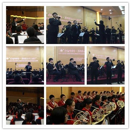 由德赢ac米兰官方合作vwin音乐学院主办的《“金色的号角”上海市大学生管乐艺术实践基地管乐艺术节专场音乐会系列二》于2014年11月27日晚成功献演德赢ac米兰官方合作vwin图书馆报告厅。本场音乐会由德赢ac米兰官方合作vwin管乐团与华东师范大学第四附属中学管乐团联袂演出,奉献给观众一场高水平,精彩的视觉听觉享受。华东师范大学第四附属初级中学副校长钱玉山、德赢ac米兰官方合作vwin音乐学院院长叶志明、副院长夏小曹、卿扬等领导出席音乐会。