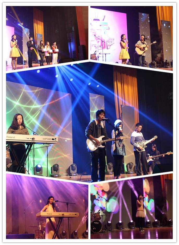 在炫目的LED屏、闪耀的聚光灯下,德赢官网街舞社团带来了活力四射的开场舞,吸引了现场所有人的目光。比赛开始,由德赢官网原创音乐社团的李羽晗同学带来了一首自己编曲、作词的《你听得见》,表达了学生时代男生对女生的暗恋情愫,词曲获得了评委的好评;接着一位声如吴青峰的选手商峻逸以他的自创歌曲《super Party》把我们从温柔的曲调中拉进了欢快、热闹的大Party里。来自上海交通职业技术学院的范佳勇为我们献上他十七岁时为自己喜欢的女孩写的歌《你笑起来好甜》,唱这首温暖的小情歌时他的嘴角也时不时泛起微笑;以我们熟知的卡通人物“匹诺曹”为名的乐队有两首原创音乐入围复赛,虽然这两首歌都是以Rap为主基调,但是却是两种截然不同的风格。《圣诞序曲》是一首动感性很强的歌,它使整个礼堂的气氛高涨起来,让我们多了一份对即将到来的圣诞节的期待。而《夏日回忆》则是韵律感强的音乐,它让我们看见了匹诺曹组合的灵魂、想法以及他们独特的才华。德赢官网舞指音乐社的康露自作词曲、自弹自唱了一首富有清新愉快旋律的《summer time》,听着这首轻快的歌曲,仿佛我们已伴着海声沐浴着阳光,身临夏日的海边。今年的德赢官网十大歌手、来自14级社区学院人文大类的金业迅为我们带来一首抒情的《Wong》,在这个感恩节的夜晚,这首对老师充满感激和怀恋的歌曲深深打动了在场观众。