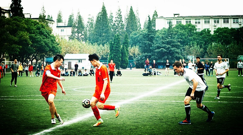 学院副院长方慧为足球赛致开幕词,她讲到,运动可以调节压力、强身健体,希望同学们都能重视体育运动,保持强健的体魄,中德友谊赛至今已是第六届,活动很好的融合了东西方的竞赛精神,加强了东西方的文化交流,希望今后能够开发出更多此类的沟通交流项目。在分别奏完中国和德国国歌后,两队队长对此次比赛发表赛前宣言,NAR街舞社社员作为拉拉队为大家带来开场舞,活力四射的舞蹈将赛前大家兴奋的情绪调动到了高潮,学院学生工作部副主任吴明龙老师的一脚开球正式宣告第六届中德足球友谊赛开始啦!