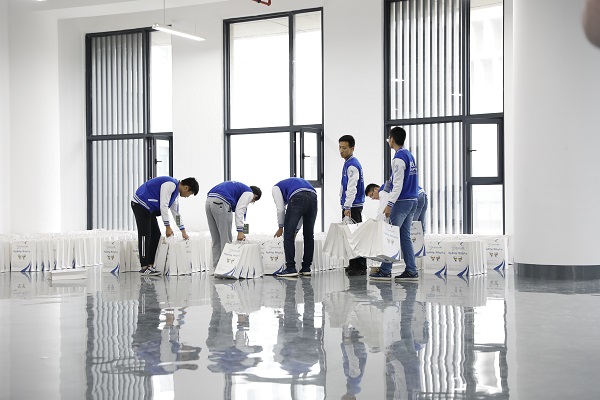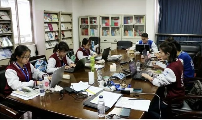 凌晨2:00,“我们这边的物资不足了,明天班车上带一些过来吧”,负责物资的志愿者还没有进入梦乡,仍在协调着各方面工作。而同一个楼层的其他教室中,也仍有志愿者在忙碌着,有些在准备着之后的会议资料;有些在撰写着当天活动的新闻稿;有些在联系着临时任务所需的志愿者人员……
