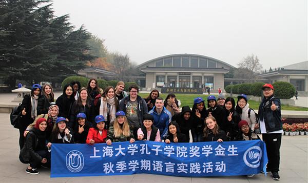 下午,孔奖生们前往位于西安市临潼区的秦始皇兵马俑博物馆。兵马俑,对于大多数留学生来说久闻其名,都知道这是世界八大奇迹之一,可当他们真正面对这一历史古迹时,却无一不为之震撼,并为中华民族优秀精湛的历史文化而赞叹不已。波兰留学生天荷说,这些陶俑和陶马都是独一无二的,非常酷,而且是两千多年前的,很了不起,我很喜欢。