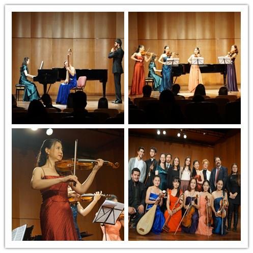 在海峡大学孔子学院中方院长刘义副教授精彩而简短的开场白后,音乐会由德赢ac米兰官方合作vwin音乐学院师生组成的弦乐重奏组合演奏的《勃兰登堡协奏曲》开场,富有色彩而轻快地旋律很快调动了现场观众的热情。之后,来自音乐学院的大四学生邱品榕和朱莹琳演奏了巴赫的《双小提琴协奏曲》,两位小提琴手交替演奏的旋律新鲜而具有趣味,深刻体现了巴洛克音乐装饰性的音乐风格,博得了台下观众的阵阵掌声。两位小提琴手演毕,音乐会进入了中国音乐时段。大二学生吴思里同学演奏的竹笛曲《牧民新歌》旋律浓郁清新,展现了中国民间特有的音乐性。大四学生罗楠演绎的二胡名曲《赛马》体现了二胡这件乐器特有的旋律性及其复杂的演奏技巧,把草原上骏马奔腾的景象还原得栩栩如生。由大二学生夏烨和吴思里组成的琵琶与竹笛组合,演绎了新疆名曲《送我一支玫瑰花》,其音乐风格与土耳其民间音乐颇有几分相似之处,其速度与音色展现了两国相近的音乐特点,引起了在场土耳其观众的共鸣。接着,音乐学院副教授任音老师与以上两位同学合作演奏了钢琴曲《彩云追月》,乐曲应答式的对话仿佛是云月的嬉戏,情态逼真、意趣盎然。这些同学和老师把中国音乐的特点演绎得十分到位,用中国民族器乐曲较好地诠释了中国音乐的内涵和特点,让土耳其观众走进中国音乐,加深了对中国音乐的认识和了解。