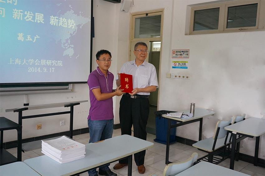 讲座前,会展研究院颁发聘书,正式聘请葛玉广担任上海会展研究院特约研究员。在师生互动环节,葛先生提出,未来如何完善会展产业扶持政策,或将成为会展研究的对象。葛玉广平实的演讲风格及其资深的行业管理经验,赢得了在座师生的一致赞誉。讲座最后在葛玉广对会展师生的寄语——“自强不息、奋发图强、会展天地、大有作为”中结束。讲座前后,葛先生还与德赢ac米兰官方合作vwin会展专业的中青年教师、研究生及本科生,就会展研究和会展业的发展进行了深入的探讨与交流。