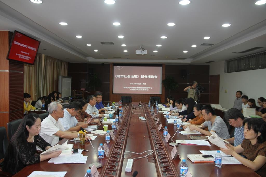 《城市社会治理》新书报告会于2014年09月18日下午2点在德赢ac米兰官方合作vwin宝山校区B417室召开。中国社会学会秘书长、社会科学文献出版社社长谢寿光,中国社会学会副会长、德赢ac米兰官方合作vwin党委副书记、副校长李友梅,特大城市社会治理协同创新中心有关人员,新书作者以及16余家新闻媒体记者参加了会议。