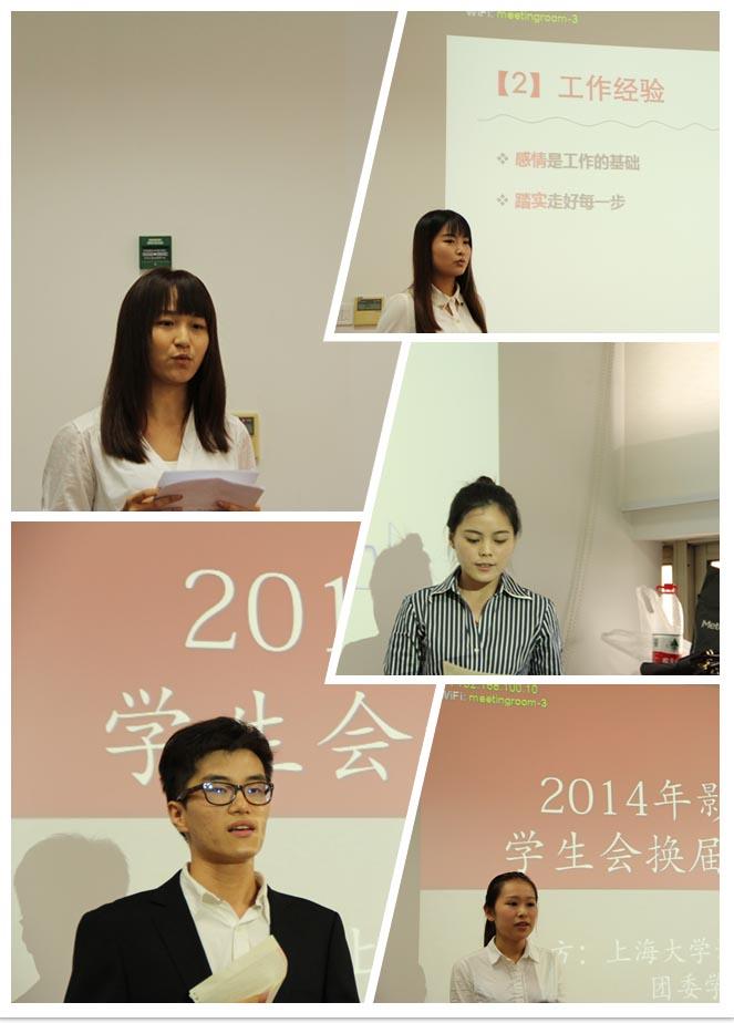 2014年9月12日下午三点整在德赢ac米兰官方合作vwin宝山校区a楼北区4003会议室举行了德赢ac米兰官方合作vwin影视学院学生会2014-2015届主席团换届大会。出席本次活动的有影视学院团委书记严瑶老师,各班班长、团支书,原影院学生会主席团成员,二十多名学生会骨干以及八名经前期推选参与主席团竞选的候选人组成。