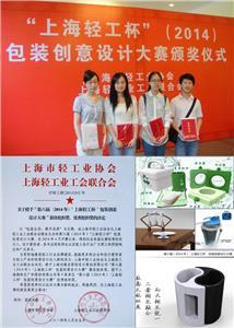 2014年8月29日-31日举办的“第七届上海设计双年展”上,展出德赢官网机自学院工业设计专业2010级和2011级学生十几件作品,所有作品均为“上海轻工杯”第五届和第六届创意设计大赛获奖项目。值得称赞的是,2014年第六届“上海轻工杯”的主题,是包装创意设计,在老凤祥、上海家化、梅林-正广和等上海名牌企业设计公司(都有市级的“大师设计室”)的激烈竞争设计中,工业设计2011级吴凡一、刘昴坤、张嘉颖、张含四位同学以赋予技术含量独特功能的产品包装创意,得到评委的赞许并获奖,也间接宣传了德赢官网工业设计专业一贯坚持的“功能决定型态”的创新教学理念和方法。工业设计专业教师虞世鸣获得优秀指导者奖和优秀组织奖。