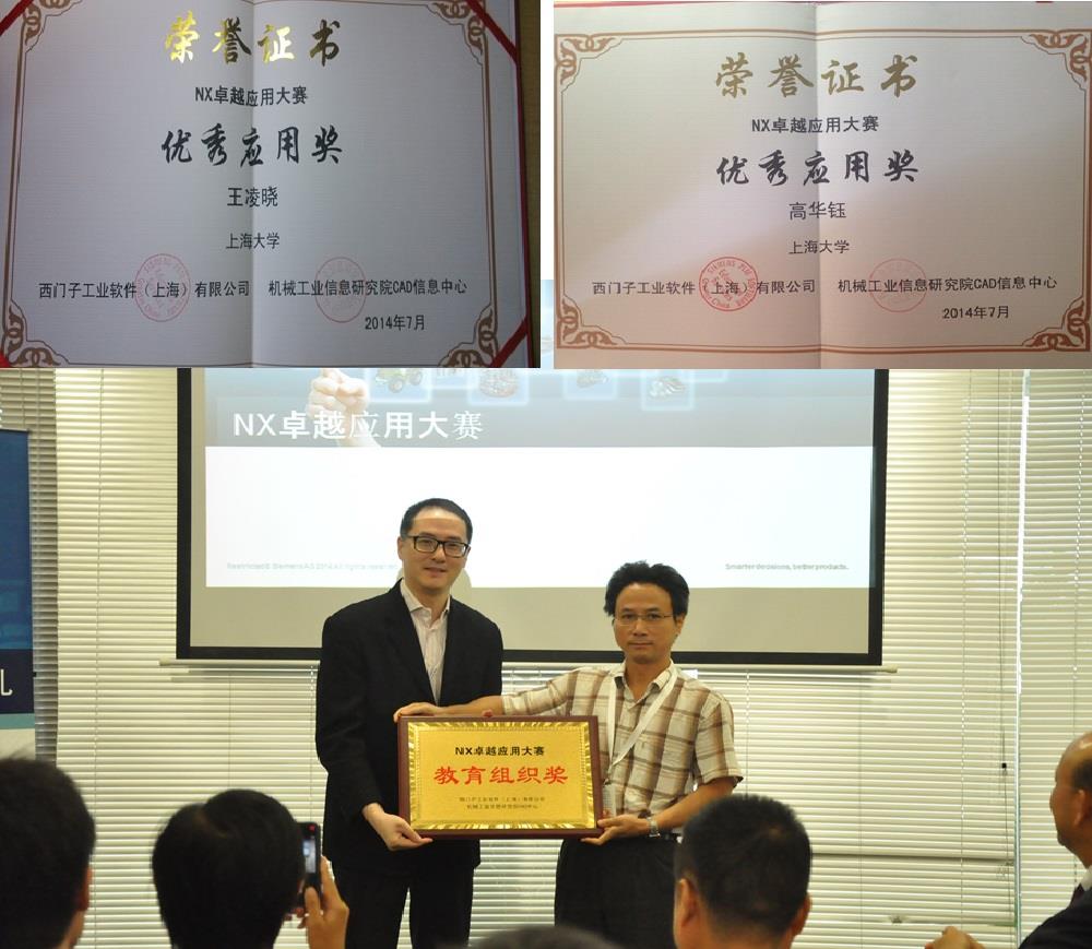 日前,由Siemens PLM Software公司主办、智造网和《CAD/CAM与制造业信息化》杂志社承办的“NX卓越应用大赛”颁奖典礼在西门子上海中心举行(大赛相关报道可浏览大赛官网http://idnovo.com.cn/nxstar),德赢官网2名学生(高华钰、王凌晓)获得优秀应用奖,她们也因此免费获得了由西门子研发中心颁发的NX应用工程师中级证书,机自学院在本次大赛中获得教育组织奖,戴春祥老师代表学院领取了该奖。颁奖典礼后,《CAD/CAM与制造业信息化》期刊记者就NX软件在本科教学及产学研应用等方面采访了戴春祥老师,相关采访报道将于近期在该期刊上登出。