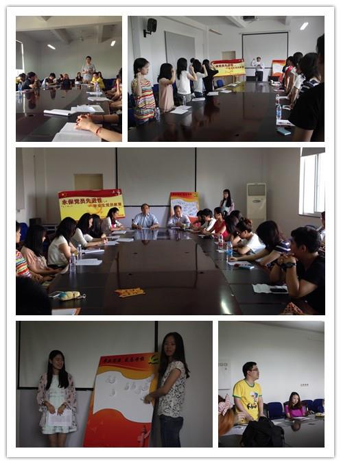 2014年7月7日上午,“毕业思源 感恩母校 永葆共产党员先进性”数码艺术学院2014届毕业生党员集中教育活动在数码A楼417会议室举行。数码艺术学院党委书记陈大明、副院长张华良、组织干事倪瑜、毕业班党支部书记、辅导员以及2014届毕业生党员参加了此次活动。活动由2014届毕业生党员姜禄瑶主持。