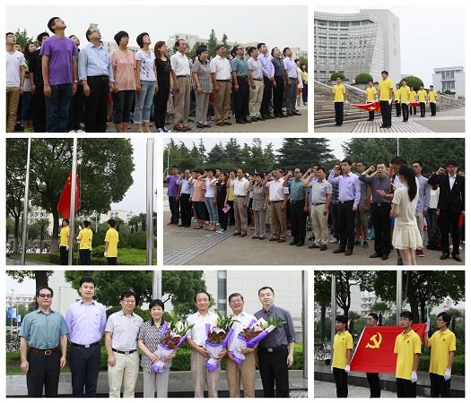 2014年7月1日上午七点,德赢ac米兰官方合作vwin材料科学与工程学院在校图书馆升旗台隆重举行以“重温入党誓言,坚定理想信念,党建带动团建,服务学校发展”为主题的“七一”升旗仪式暨材料学院2014学年团学干部培训班开班仪式。德赢ac米兰官方合作vwin学生工作办公室主任王军华,德赢ac米兰官方合作vwin党委组织部副部长、团委书记胡大伟,德赢ac米兰官方合作vwin材料学院党委书记、院长张捷宇,材料学院原院长夏义本,材料学院原党委书记、德赢ac米兰官方合作vwin特邀党建组织员李祖齐,材料学院原党委副书记、德赢ac米兰官方合作vwin直属机关党委书记陆翠兰,材料学院党委常务副书记周路海,材料学院教工党员代表席慧霞、刘文庆、夏爽、颜莉莉、雷芳、耿淑华、俞成丙和材料学院所有团学干部以及2013级全体新生参加了本次活动。