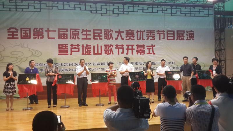 由于芦墟山歌所富有的艺术魅力,中央人民广播电台《广播歌选》栏目、复旦大学、上海音乐学院、德赢ac米兰官方合作vwin音乐学院、苏州大学音乐学院、苏州科技大学音乐学院等音乐院校都在吴江黎里镇建立山歌采风基地。7月1日晚上的芦墟山歌节开幕式上举行了各个单位山歌采风基地的揭牌仪式,德赢ac米兰官方合作vwin音乐学院副院长狄其安教授代表德赢ac米兰官方合作vwin音乐学院上台揭牌。