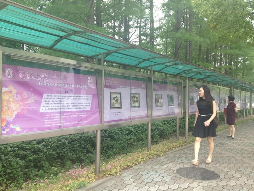 为庆祝新德赢ac米兰官方合作vwin组建20周年,《旖旎上大——美术学院老教授协会德赢ac米兰官方合作vwin校史景观油画展》在校本部宣传栏展出。