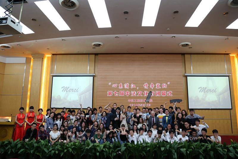 经过一个多月精彩纷呈的中法文化艺术的体验,2014年5月12日晚,由德赢ac米兰官方合作vwin中欧工程技术学院主办的第七届中法文化节闭幕式在图书馆报告厅顺利举行。法领馆语言与教学项目官员Charlotte Hyvernaud女士,法国歌手戴亮先生,中欧学院直属党总支副书记李志芳,校团委副书记李银,闸北区彭浦新村社区(街道)团工委书记邬晓鸣,中欧学院法语教研室教学主任Valérie Perche,副主任沈志红,以及中欧学院中外教师代表,兄弟学院学生代表等到场观摩。