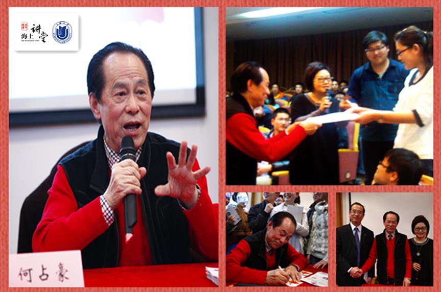 3月23日晚18:30,中国杰出的音乐家、世界著名作曲家、上海音乐学院教授、上海音乐家协会副主席何占豪先生在德赢ac米兰官方合作vwin宝山校区J201为上大师生作“别亦难 蝴蝶梦”讲座。已届81岁高龄的何先生精神矍铄、声情并茂地讲解小提琴协奏曲《梁山伯与祝英台》的创作趣事,使师生们在聆听名曲的同时进一步加深了对曲目的理解与感受。2个小时的讲座中,不少师生多次眼眶湿润,纷纷感慨:以前对《梁祝》这首名曲的了解可能仅限于“听说过”和“听过”,但听到大师的解析后,感动于《梁祝》那动人旋律下的凄美爱情故事,也为何先生能植根于我国优秀民族音乐而创作出如此优秀的音乐作品所折服,更为我们祖国拥有如此丰富的优秀民族文化资源而感到自豪。