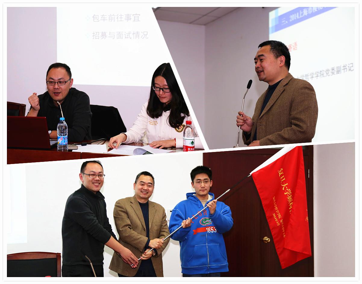 3月11日下午1时30分,2014上海樱花节复旦大学志愿者培训会暨出征仪式于光华楼西主楼2501会议室隆重举行。作为项目发起方,德赢ac米兰官方合作vwin社科学院党政领导与老师对复旦志愿者的组织招募工作寄予了极大关注与支持,当日社科学院团委书记陆耀峰与有着丰富志愿活动经验的邵杰、蒋翔两位同学,专程为复旦大学哲学学院与中国语言文学系学生进行了丰富精彩的志愿服务培训。复旦大学哲学学院领导亦十分重视本次跨校志愿合作项目,学院党委副书记邵强进老师全程出席会议,并在启动仪式致辞。