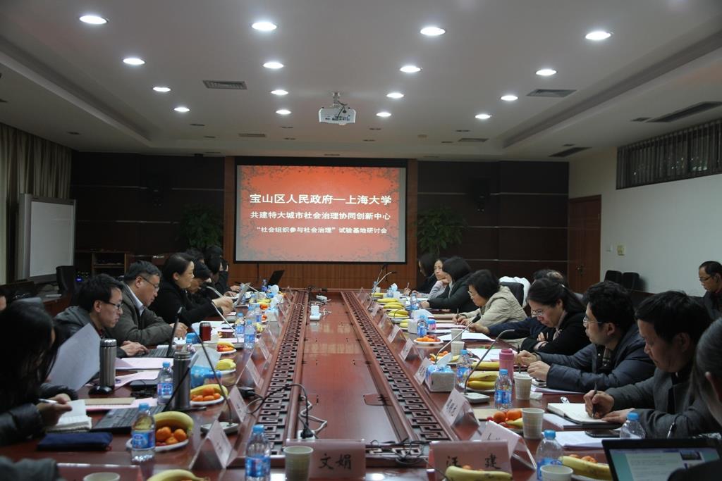 2014年2月25日下午,特大城市社会治理协同创新中心“社会组织参与社会治理”试验基地研讨会在德赢ac米兰官方合作vwinB417召开。宝山区委常委、副区长周德勋及相关部门领导,德赢ac米兰官方合作vwin党委副书记、副校长李友梅、德赢ac米兰官方合作vwin人文社会科学处、社会学院相关负责人和教师参加了研讨会。会议双方就宝山区社会治理方面的重大需求任务、顾村大型居住社区以及友谊街道在社会治理方面的经验和亟待解决的问题,以及协同创新中心研究主题、建设任务和建设方案等问题进行深入地交流与座谈。
