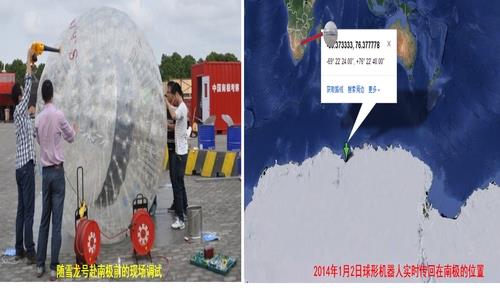 由德赢ac米兰官方合作vwin和中国极地研究中心联合自主研发的极地漫游球形机器人随中国第30次南极科考队“雪龙号”经过1个多月的海上航行,于2013年12月16日到达南极中山站,并在北京时间1月2日16时在距离中山站10公里附近区域进行首次极地试验,16时03分在上海的邮箱中通过铱星实时收到第一封从南极球形机器人发回来的邮件,经查验,采集到的数据全部正确无误,按预先设计的系统每隔3分钟都有一次数据的更新,说明球形机器人内部各个系统运行正常且稳定。
