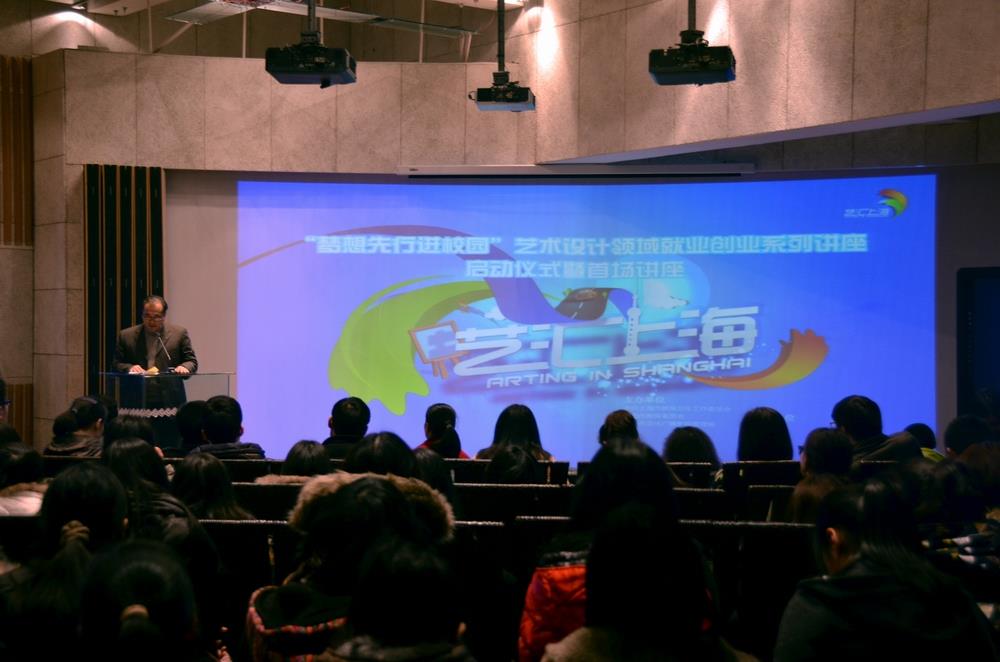 2014年1月7日晚6点,艺汇上海——首届上海校园新锐艺术设计人才培养与推介活动之“梦想先行进校园”艺术设计领域就业创业系列讲座启动仪式及讲座,在德赢ac米兰官方合作vwin美术学院隆重举行。随着系列讲座的启动,10场关于艺术设计专业学生就业、创业的高质量讲座将陆续进入上海各高校,为学子们开启更广阔的视野,搭建专业学习与就业创业相互沟通的平台。