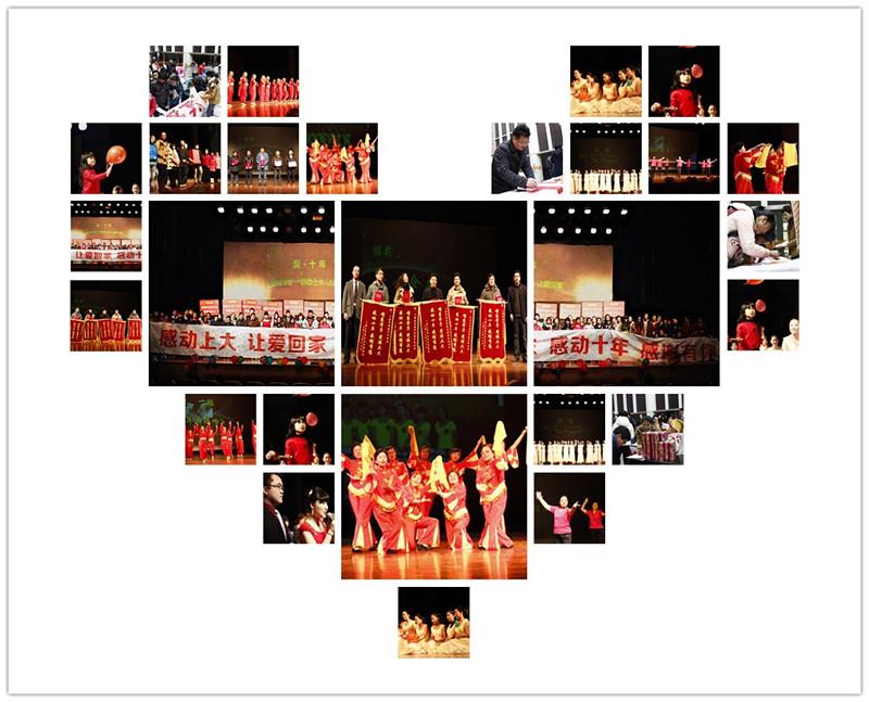 一段视频《感动十年 感谢有你》回顾了“感动上大让爱回家”自2004年发起以来的十年历程:从一个单纯的捐款活动到依托慈善爱心屋开展常规化、制度化帮困的校园慈善文化品牌;从学生们最初的不理解到纷纷踊跃参与;从个人单纯地受助到成长后的奉献回报;从校内师生的爱心活动到社会大家庭的支持帮助,感动十年,感谢有你。
