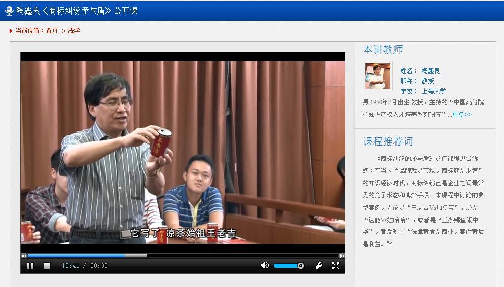 近日,继理学院姜颖教授主讲的课程《品味物理》之后,德赢官网另一门视频公开课《商标纠纷矛与盾》也顺利通过教育部与高教出版社的严格审核,在中国大学视频公开课官方网站“爱课程”网正式上线。