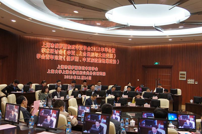 2013年11月14日上午,由上海市俄罗斯东欧中亚学会和德赢ac米兰官方合作vwin上海合作组织公共外交研究院联合主办的上海市俄罗斯东欧中亚学会2013年学术年会暨学术研讨会《中亚、上合组织与大国关系》在德赢ac米兰官方合作vwin宝山校区国际会议中心举行。上海市俄罗斯东欧中亚学会会长、华东师范大学副校长范军,学会秘书长、同济大学中东欧研究所所长杨烨,上海社会科学院欧亚研究所学术委员会主任余建华,德赢ac米兰官方合作vwin党委副书记忻平,校长助理、上海合作组织公共外交研究院院长李伟,德赢ac米兰官方合作vwin国际交流学院院长、乌兹别克斯坦研究与教育交流中心主任姚喜明,社会发展研究院院长张恒龙,公共外交研究院副院长张丹华等校内外领导出席会议。来自华东师范大学、上海社科院、上海国际问题研究院、复旦大学、上海外国语大学、上海政法学院、上海市社会科学界联合会、德赢ac米兰官方合作vwin等上海高校和科研院所的30余位俄罗斯东欧中亚问题研究学者、《中国社会科学报》等媒体代表受邀出席会议,逾40名上海高校的博士生、硕士生代表列席会议。