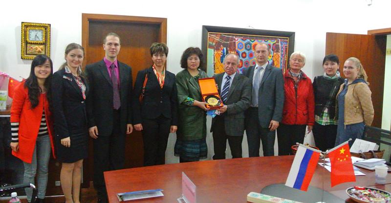 2013年11月14日,俄罗斯阿尔泰边疆区教育与青年政治委员会副主席菲里波夫•亚历山大率团访问德赢ac米兰官方合作vwin,随行的有阿尔泰国立技术理工大学国际教育与合作处处长斯科瓦罗得尼科夫•弗拉基米尔、上海市友协李舒等。德赢ac米兰官方合作vwin上海合作组织公共外交研究院副院长张丹华接待了代表团,莫斯科国立大学沃罗尼娜教授参加了座谈。