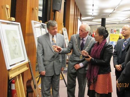 中外嘉宾、师生百余人参加了11月4日在科克大学图书馆举办的画展开幕式。科克市副市长John Kelleher先生、上海市政协主席吴志明先生、科克大学校长Michael Murphy教授、德赢ac米兰官方合作vwin党委副书记鲁雄刚教授为画展揭幕并分别讲话。科克市副市长John Kelleher先生充分赞扬了科克与上海的友谊与合作,肯定了画展的意义;吴志明主席高度评价了德赢ac米兰官方合作vwin美术学院的教学质量与社会影响力;Murphy校长充满激情地表达了他对中国画的欣赏与喜爱;鲁雄刚副书记介绍了德赢ac米兰官方合作vwin与科克大学的友好合作,感谢科克大学对画展的大力支持。