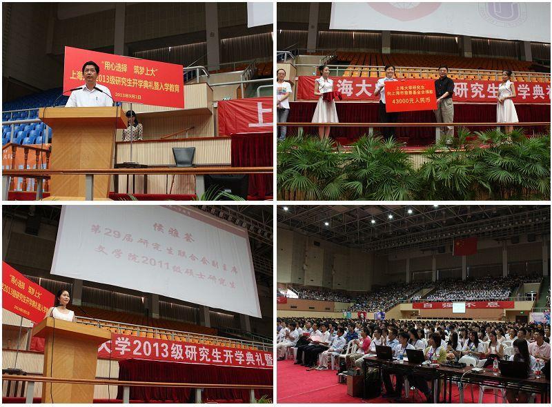 9月1日上午,以“用心选择,筑梦上大”为主题的德赢ac米兰官方合作vwin2013级研究生入学教育在宝山校区体育馆举行。本次入学教育通过向研究生新生介绍德赢ac米兰官方合作vwin的育人理念与研究生教育培养特色,帮助他们更快地融入到新的学习生活中,更坚定自己的选择。入学教育现场首先播放了《德赢ac米兰官方合作vwin,我的选择》的开场短片,短片以经济学院研究生新生张权的视角为主线,描述了对上海这座大都市的认识,对德赢ac米兰官方合作vwin的向往,对即将开始的研究生新生活的憧憬。