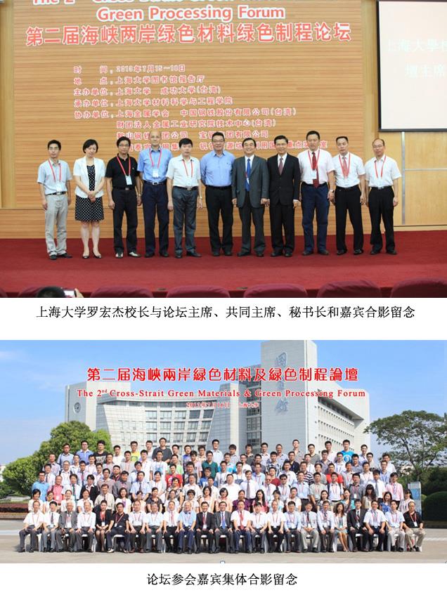 2013年7月15-18日,第二届海峡两岸绿色材料及绿色制程论坛(The Second Cross-Strait Green Materials and Green Processing Forum)在德赢ac米兰官方合作vwin顺利召开,此次论坛由德赢ac米兰官方合作vwin和成功大学(台湾)联合主办,德赢ac米兰官方合作vwin材料科学与工程学院承办,上海市金属学会(大陆)、中国钢铁股份有限公司(台湾)、财团法人金属工业研究发展中心(台湾)、鞍山钢铁集团公司(大陆)、宝钢集团有限公司(大陆)、中信泰富特钢集团(大陆)、钒钛资源综合利用国家重点实验室(大陆)等七家单位协办。此次论坛的主席由德赢ac米兰官方合作vwin校长助理翟启杰教授和台湾成功大学研发长黄文星教授担任,执行主席是德赢ac米兰官方合作vwin材料学院院长张捷宇教授、材料学院党委书记朱明原教授以及攀钢集团研究院有限公司教授级高工孙朝晖先生。论坛旨在促进海峡两岸材料科学领域的交流与合作,推动海峡两岸绿色材料和先进制备技术的发展。