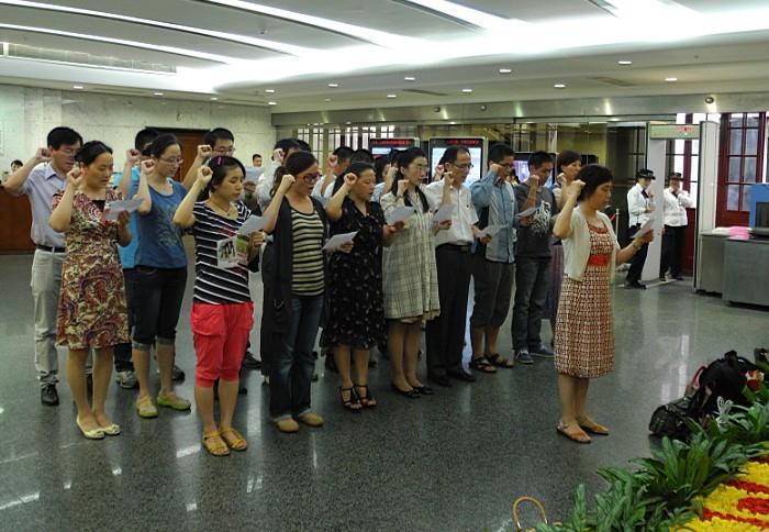 7月2日下午,德赢官网近30位2012-2013年度入党的教职工党员冒着高温,在校党委组织部的带领下到中共一大会址举行了庄严的入党宣誓仪式。