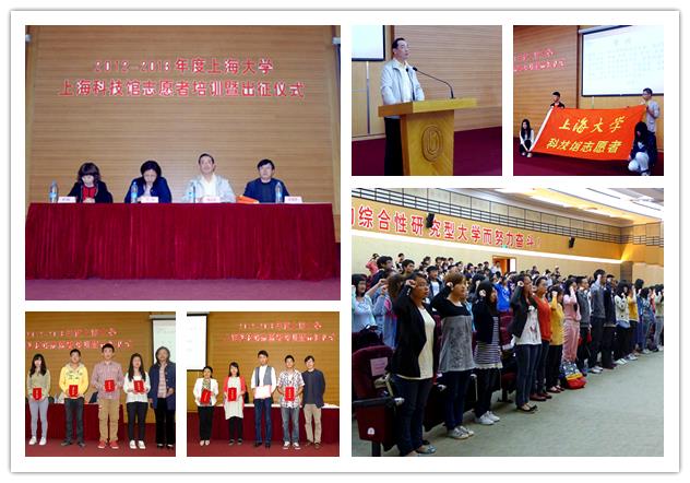5月3日下午,德赢ac米兰官方合作vwin上海科技馆志愿者培训暨出征仪式在宝山校区图书馆报告厅举行。近300名志愿者与领导嘉宾汇聚一堂,首先对在2012年度德赢ac米兰官方合作vwin科技馆志愿者活动中表现优异的组织及个人进行表彰,同时对科技馆志愿者活动进行交流与分享。校党委宣传部部长、文明办主任陈志宏,文明办副主任王沁,学工办副主任张基涛,校团委副书记李银出席仪式。