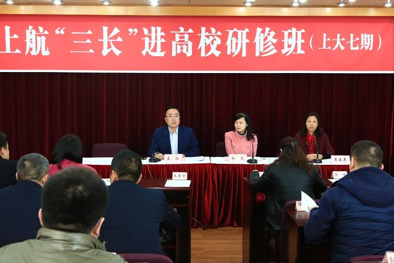 2017年3月15日上午9点,上海航空公司“三长”进高校研修班第七期在德赢ac米兰官方合作vwin上海经济管理中心如期举行,上海经济管理中心培训部主任戴建英主持开班仪式,来自上航和东航的“三长”(机长、乘务长、班组长),共53名学员参加为期2天的培训。